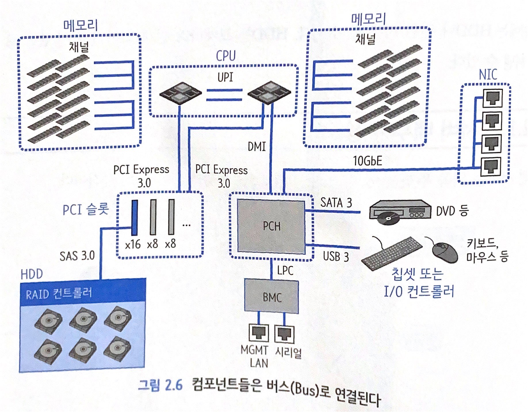버스(Bus)는 서버 내부에 있는 컴포넌트들을 서로 연결시키는 회선.