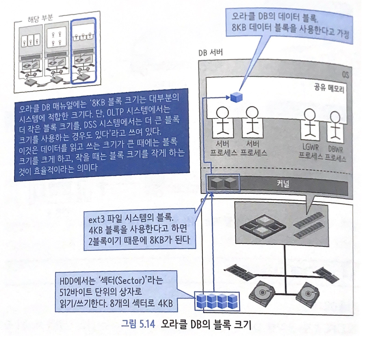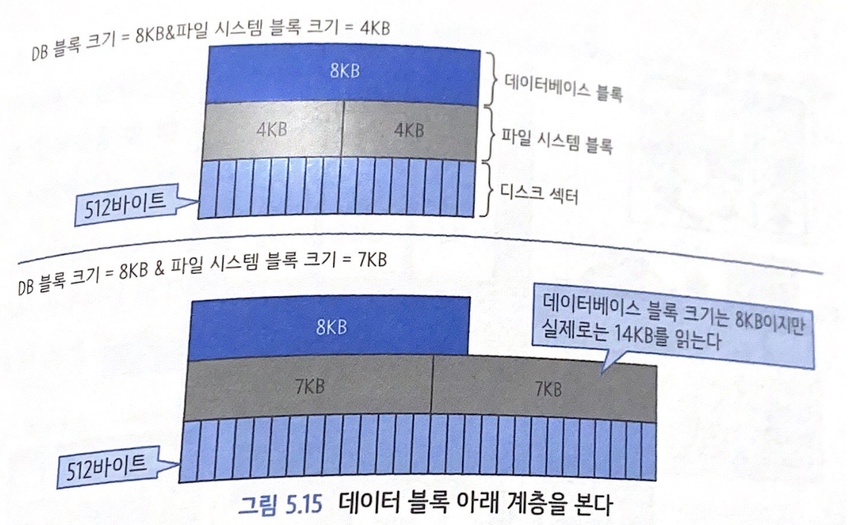 - DB 블록 크기보다 파일 시스템 블록 크기가 크면 DB에서 1블록만 읽고 싶어도 더 큰 용량만큼 읽어야 하기 때문에 비효율적