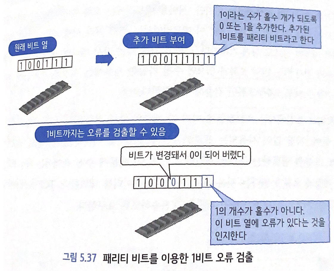 - 의도하지 않은 때에 데이터가 망가지는 것을 방지하기 위해 오류 검출이라고 불리는 구조 사용