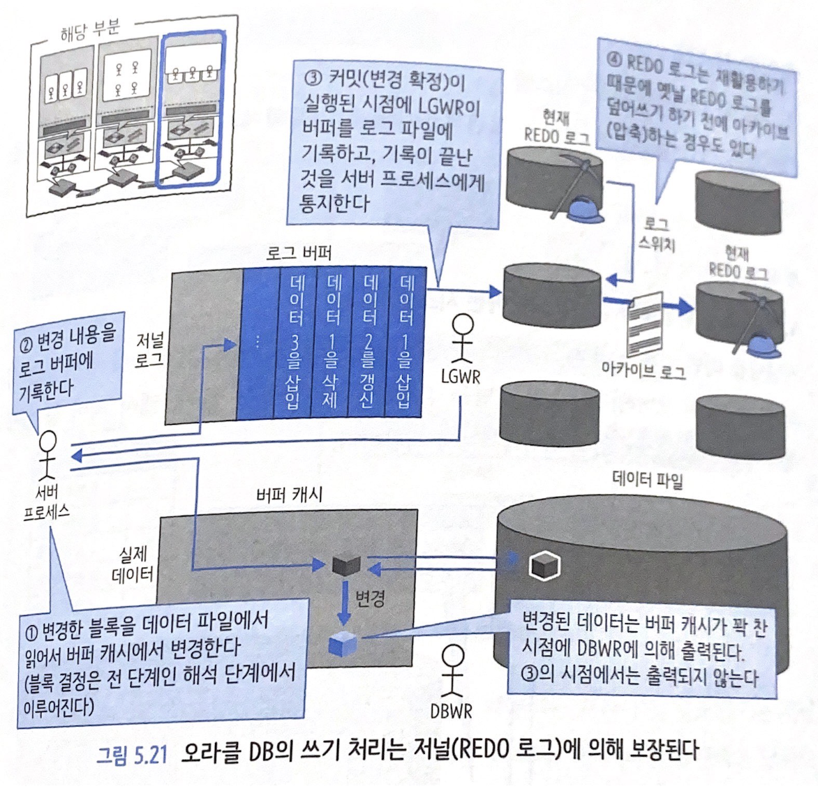 - 데이터 자체가 아닌 처리(트랜잭션) 내용을 기록하며, 데이터 일관성이나 일치성이 확보될 경우 필요가 없어지며, 데이터 복구 시 롤백(Rollback), 롤포워드(Rollforward)에 이용됨