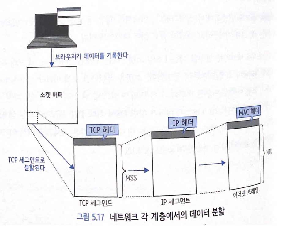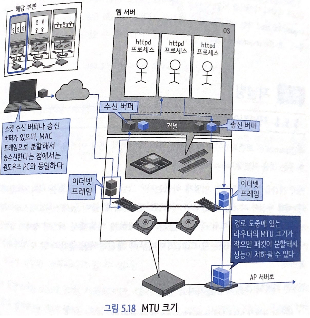 - 대량의 데이터를 송신하기 위해 처리량을 올리고 싶은 경우는 소켓 버퍼 크기를 크게 하거나 MTU를 크게 해서 튜닝을 하기도 함