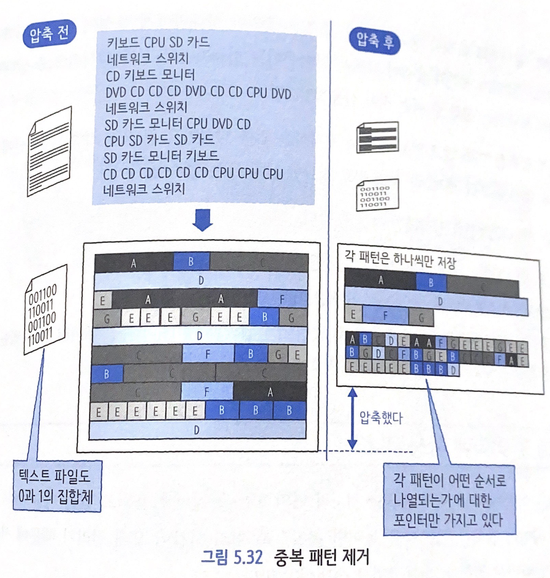 - 압축은 불필요한 공간을 제거해서 데이터 크기를 줄이는 기술