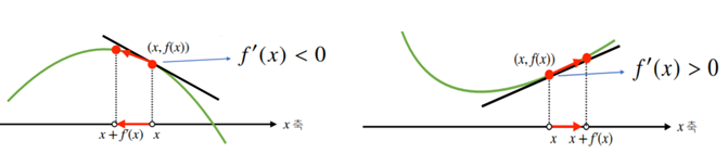- 접선의 기울기를 이용함으로써 어느 방향으로 점을 움직여야 함수값이 증가하는지/감소하는지 알 수 있음.