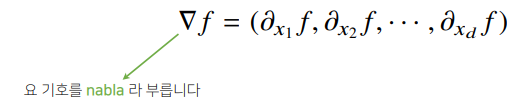 - 각 변수별로 편미분을 계산한 gradient 벡터 이용하여 경사하강법/경사상승법에 사용할 수 있음