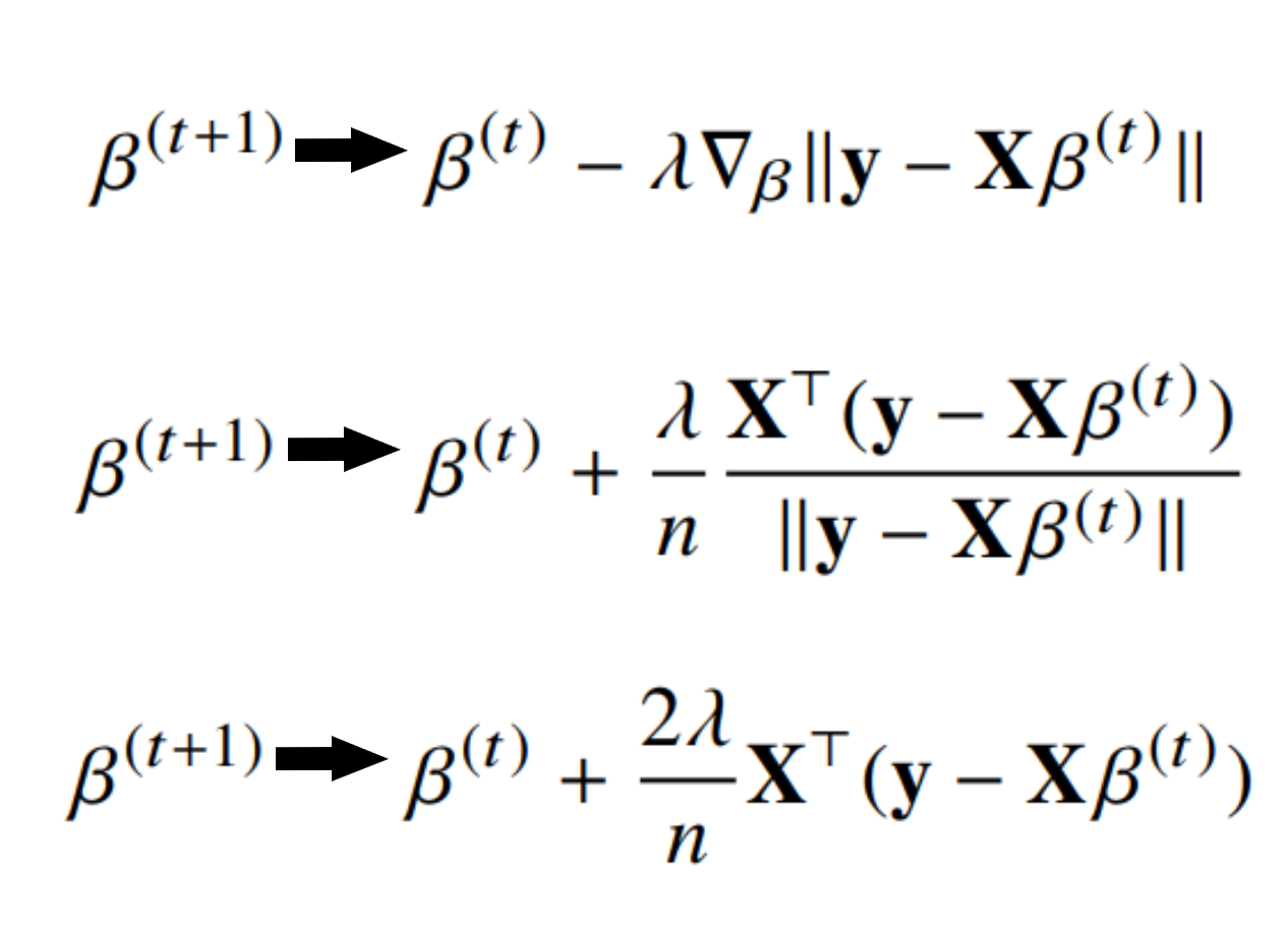 - 계산의 편리 위해 L2-norm(||y-Xβ||)를 제곱한 값을 사용.