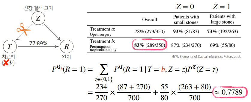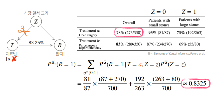- do(T=a)라는 조정(intervention) 효과를 통해 Z의 개입 제거