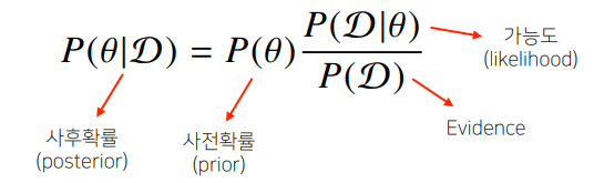 - 사후확률 : data가 주어져있을 때 parameter θ가 성립할 확률